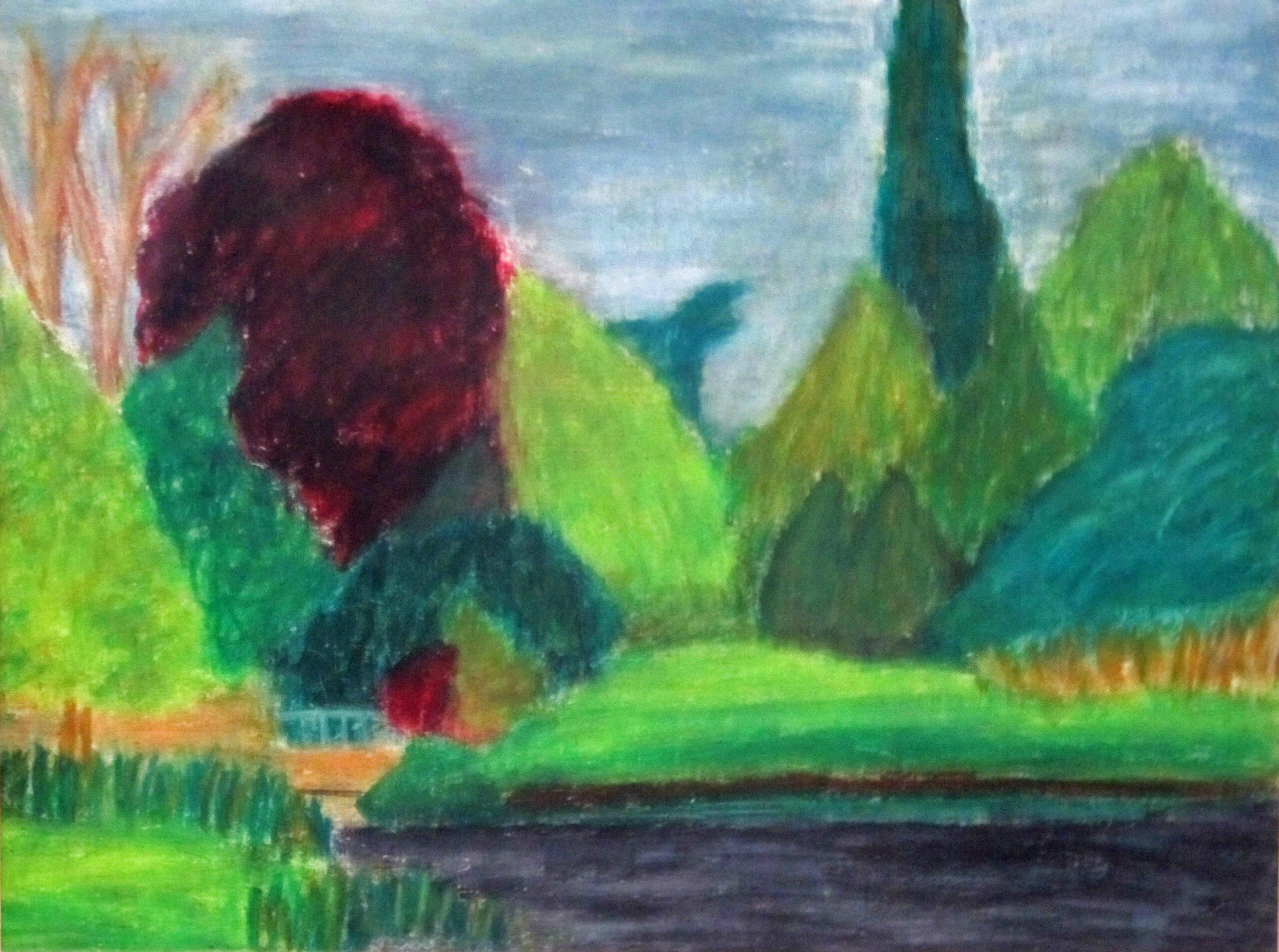 (dierentuin Blijdorp)Jason in de sneeuwBurgemeester Berkhoutpark in Voorschoten, uitzicht op de grote vijver.Tekeningen in oliepastel